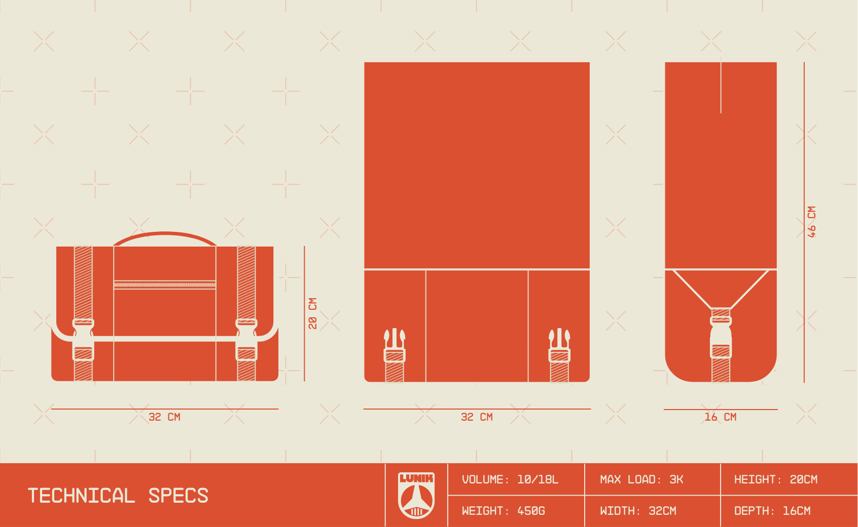 Meet Laika, our versatile bike bag that adapts to your daily commute and the way you use your bike. It combines a roll-top closure with a top flap to keep your belongings secure and dry, while offering a more refined look than traditional roll-top systems.. The expandable design shifts from 10 to 18 liters, perfect for extra cargo. Built with a removable rigid structure that helps it maintain its shape when attached to a rear of front rack. The external zippered pocket with keyring keeps essentials within easy reach. Mount it on your handlebars, basket, or rear rack – and when you're off your bike, it transitions seamlessly into a stylish everyday bag. Handcrafted to order in our shop in Argentina.